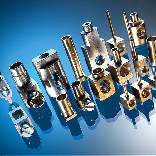Bördelbuchsen, Nietbuchsen, Kontaktbuchsen, Kontaktstifte, Lötbuchsen, Lötstifte, Lüsterklemmeneinsätze, Hülsen, Steckerbuchsen und Steckerstifte für den Einsatz in Anschlussdosen, Anschlusssteckern, Steckdosen, Schaltern und Leiterplatten für die Elektro- und Elektronikindustrie sowie Steuerungstechnik